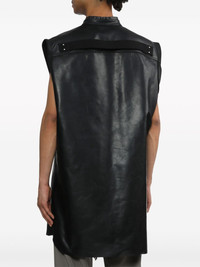 V-neck leather vest Reflective of the brand's affinity for exaggerated proportions and dark colour palettes, this Rick Owens vest is cut from supple black calf leather to a sleek elongated silhouette. It's accented with silver-tone press studs. Highlights - Black - Calf leather - Strap detailing - Silver-tone hardware - V-neck - Front press-stud fastening - Sleeveless - Curved hem Imported Composition Calf Leather 100% Washing instructions Specialist Cleaning