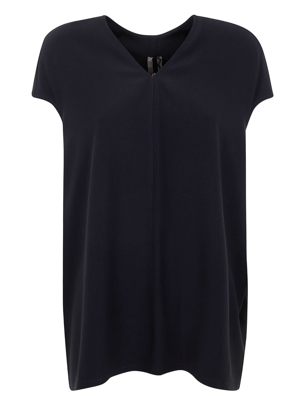 v-neck short-sleeve blouse Highlights - Black - V-neck - Short sleeves - Centre seam - Straight hemline Made in Italy Composition Viscose 100% Washing instructions Read Manufacturer Guidelines