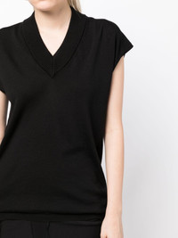 V-neck wool top Highlights - Black - Wool - Knitted construction - V-neck - Sleeveless - Straight hem Made in Italy Composition Wool 100% SIZE & FIT Model measurements Height 5 ft 9 in(1.76 m) Bust/Chest 31.1 in(79 cm) Hips 35.03 in(89 cm) Waist 24.4 in(62 cm) FittingInformation Designed for a slim fit that sits just away from the body offering a close yet comfortable fit Made with a lightweight knit, this piece offers some stretch This piece fits true to size – take your usual size