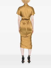Wrap midi dress Highlights - Light brown - Satin finish - Wrap design - V-neck - Short sleeves - Mid-length - Unlined - Straight hem - Side tie fastening Made in Italy Composition Acetate 61%, Viscose 39% SIZE & FIT Model measurements Height 5 ft 9 in(1.75 m) Bust/Chest 34.64 in(88 cm) Hips 36.61 in(93 cm) Waist 26.37 in(67 cm) FittingInformation Designed for a wraparound style that can be adjusted to your preference The adjustable tie waist gives a more adaptable and personalised fit Made from a midweight non-stretch fabric This piece fits true to size – take your usual size