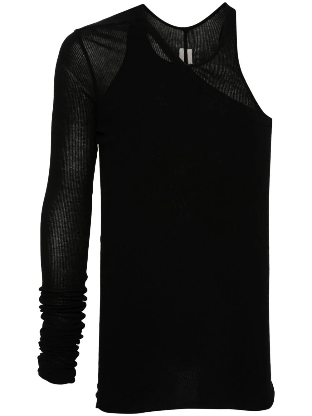 Ziggy Banana tank top Highlights - Black - Fine ribbed - Asymmetric design - Layered design - Semi-sheer construction - Single long sleeve - Asymmetric neck - Straight hem Made in Italy Composition FSC Viscose 88%, Silk 12% SIZE & FIT Model measurements Height 6 ft 2 in(1.88 m) Bust/Chest 36.61 in(93 cm) Hips 35.82 in(91 cm) Waist 27.95 in(71 cm) FittingInformation Designed for a close fit throughout Constructed with additional length on the sleeve Made from a lightweight non-stretch fabric, this piece offers minimal elasticity when worn This piece fits true to size – take your usual size Washing instructions Hand Wash