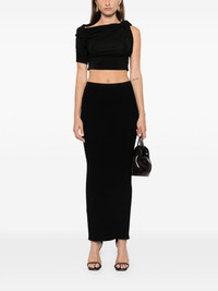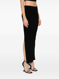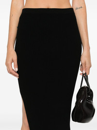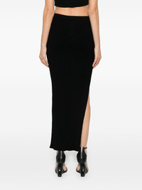 Ziggy skirt Highlights - Black - Ecovero™ blend - Stretch-design - Knitted construction - Ribbed detailing - Elasticated waistband - Side slit - Ankle-length - Straight hem Made in Italy Composition EcoVero Viscose (LENZING) 66%, Polyester 31%, Polyamide 2%, Spandex/Elastane 1% SIZE & FIT Model measurements Height 5 ft 9 in(1.75 m) Bust/Chest 32.67 in(83 cm) Hips 36.22 in(92 cm) Waist 24.8 in(63 cm) FittingInformation This midi-length skirt is intended to be worn just below the waist The vented hem offers movement at the rear Made from a midweight stretch fabric, this piece offers elasticity and flexibility when worn This piece fits true to size – take your usual size