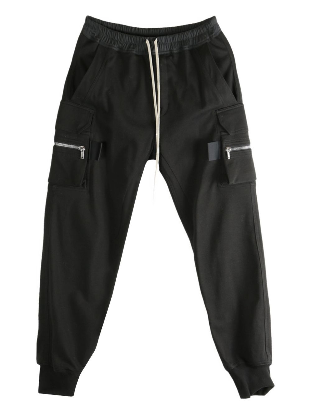zip-pocket drawstring trousers Highlights - Black - Drawstring waistband - Side zip-fastening pockets - Flap-top pockets - Cuffed hems Made in Italy Composition Organic Cotton 100% Washing instructions Read Manufacturer Guidelines