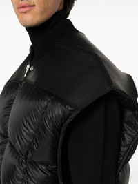 zip-up puffer gilet Highlights - Black - Down-feather filling - Padded design - Baseball collar - Front zip fastening - Sleeveless - Ribbed hem - Straight hem Made in Italy Composition Outer: Calf Leather 100%, Polyamide 100%, Cashmere 97%, Wool 3% Lining: Cotton 100%, Down 90%, Feather 10% SIZE & FIT Model measurements Height 6 ft 2 in(1.89 m) Bust/Chest 37.79 in(96 cm) Hips 37 in(94 cm) Waist 29.92 in(76 cm) FittingInformation Designed to be unstructured, offering a loose fit throughout The ribbed hem offers a close, comfortable fit Made from a padded non-stretch fabric, giving it no natural elasticity This piece fits true to size – take your usual size Measurement CHEST 43.3 in(110 cm) LENGTH 31.88 in(81 cm) WAIST 54.33 in(138 cm) Washing instructions Do Not Wash/Do Not Dry Clean