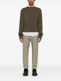 crew-neck sweater Highlights - Castoro green - Virgin wool - Fisherman's knit - Ribbed crew neck - Extra-long sleeves - Straight hem Made in Italy Composition Virgin Wool 100% SIZE & FIT Model measurements Height 6 ft 2 in(1.87 m) Bust/Chest 36.22 in(92 cm) Hips 37 in(94 cm) Waist 27.95 in(71 cm) FittingInformation Designed for a relaxed fit, this piece allows for comfort and movement when worn Made with a heavyweight knit, this piece offers some stretch