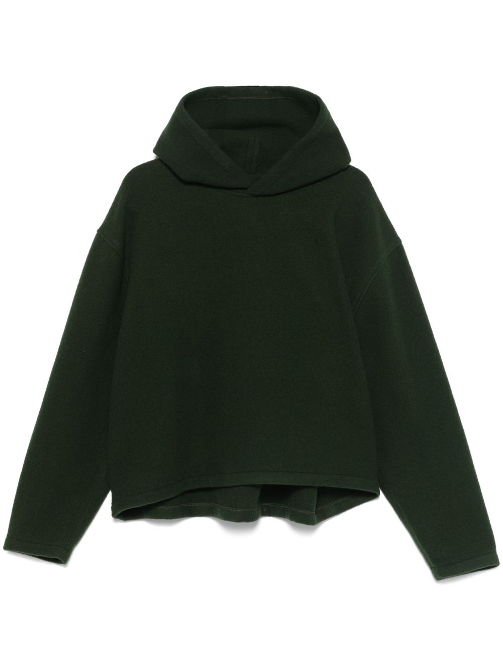 fleece cropped hoodie Highlights - Moss green - Classic hood - Drop shoulder - Long sleeves - Straight hem Imported Composition Virgin Wool 100% SIZE & FIT FittingInformation Designed for a relaxed fit, this piece allows for comfort and movement when worn Made from a midweight non-stretch fabric