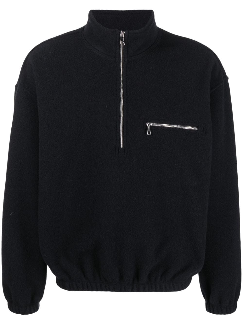 high-neck zip-up jacket Highlights - Black - Virgin wool - High neck - Half front zip fastening - Long sleeves - Elasticated cuffs and hem - Straight hem Imported Composition Virgin Wool 100% SIZE & FIT Model measurements Height 6 ft 1 in(1.85 m) Bust/Chest 35.82 in(91 cm) Hips 37.79 in(96 cm) Waist 29.13 in(74 cm) FittingInformation Designed to be unstructured, offering a loose fit throughout The elasticated hem allows for movement and a comfortable fit Made from a lightweight non-stretch fabric This piece fits true to size – take your usual size
