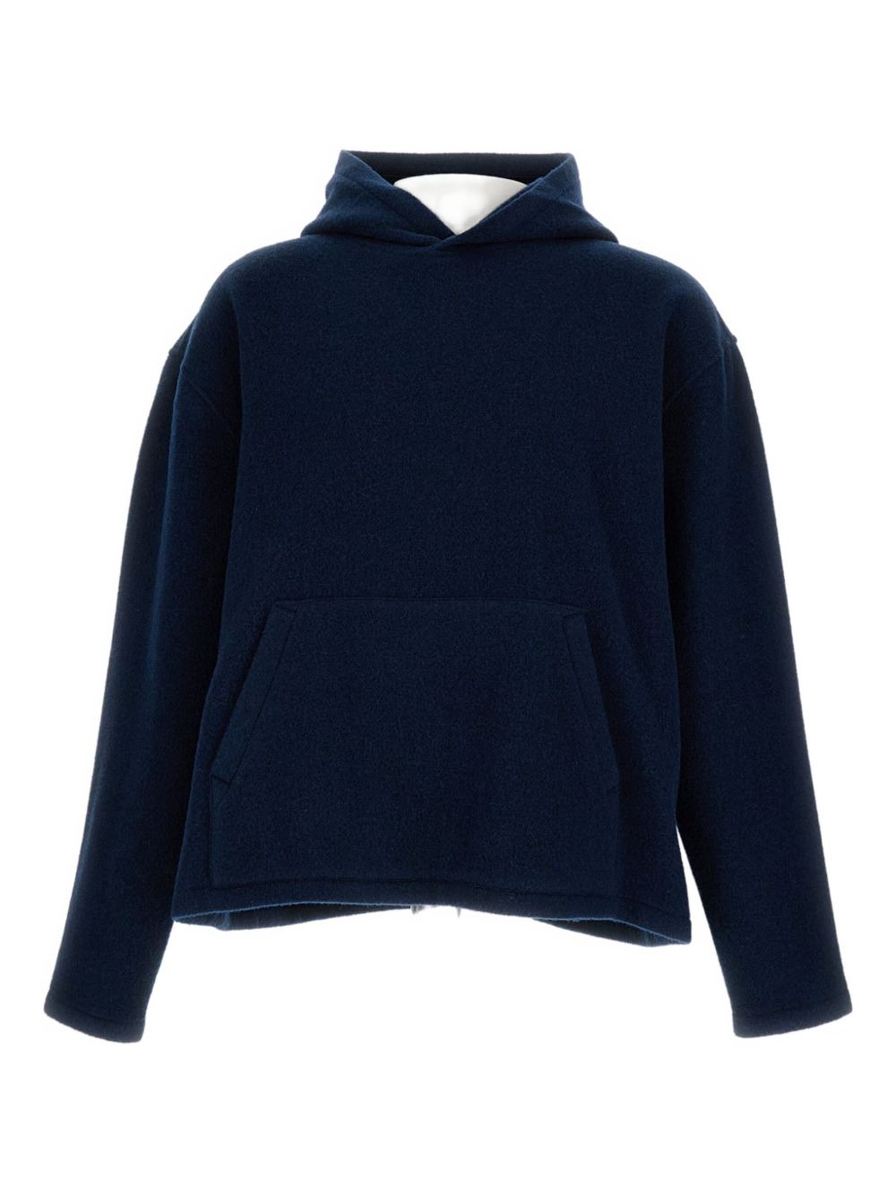 pocket hooded wool sweater Highlights - Dark blue - Hooded neckline - Kangaroo pocket - Dropped shoulders - Long sleeves - Straight hemline Imported Composition Wool 100% Washing instructions Read Manufacturer Guidelines