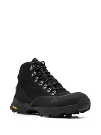 Andreas strap boots black panelled design leather panel corners padded panels embroidered logo front lace-up fastening rubber strap pull-tab at the heel Vibram® sole Made in Italy Composition Outer: Calf Leather 100%, Rubber 100%, Fabric 100% Sole: Rubber 100% Lining: Fabric 100% SIZE & FIT Measurement HEEL 1.37 in(3.5 cm) HEIGHT 4.92 in(12.5 cm) Sole height 0.98 in(2.5 cm)