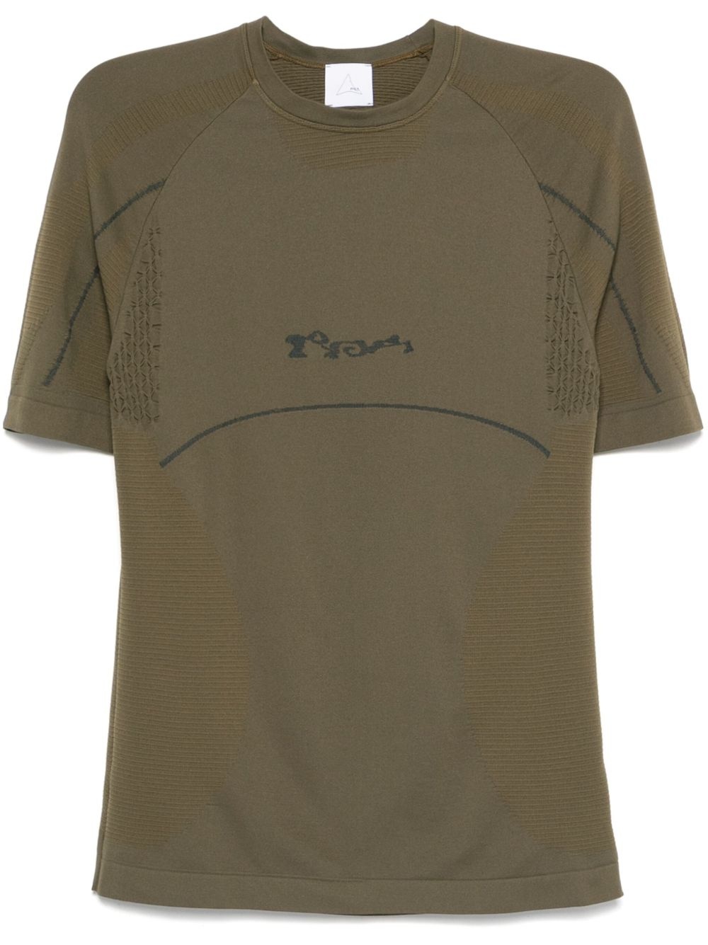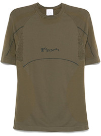 seamless T-shirt Highlights - Olive green - Crew neck - Short sleeves - Ribbed detailing Made in Italy Composition Polyamide 97%, Elastane 3% SIZE & FIT Model measurements Height 6 ft 1 in(1.85 m) Bust/Chest 38.58 in(98 cm) Hips 37 in(94 cm) Waist 30.31 in(77 cm) FittingInformation Designed for a close fit throughout Made from a midweight stretch fabric, this piece offers elasticity and flexibility when worn