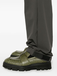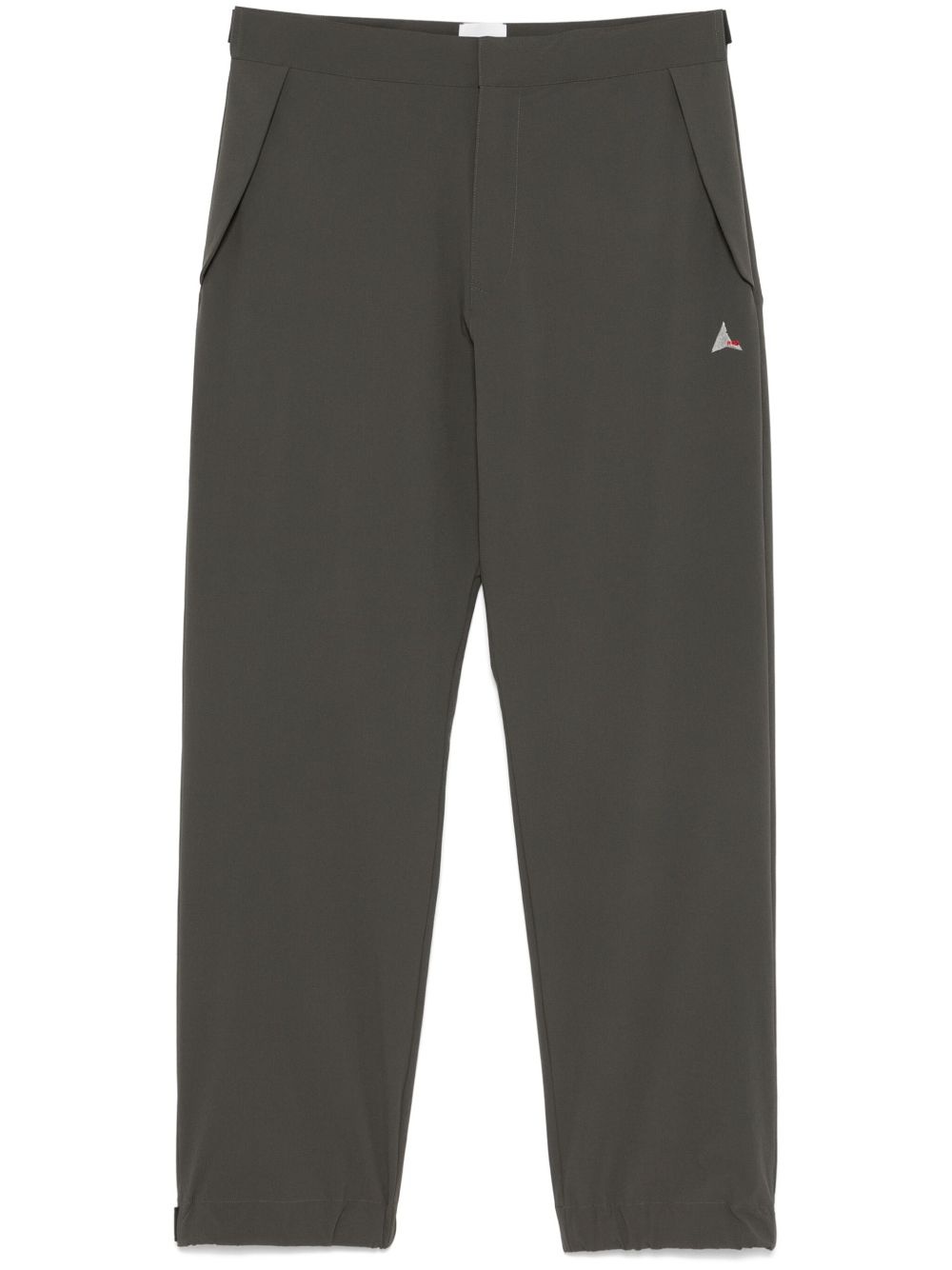 windproof trousers Highlights - Medium grey - Front press-stud and zip fastening - Two side flap pockets - Touch-strap cuffs - Two rear flap pockets Imported Composition Polyamide 88%, Elastane 12% SIZE & FIT Model measurements Height 6 ft 2 in(1.87 m) Bust/Chest 38.18 in(97 cm) Hips 36.61 in(93 cm) Waist 29.13 in(74 cm) FittingInformation Designed for a relaxed tapered leg, allowing a comfortable loose fit above the knee with a closer fit towards the calves The adjustable tabs allow for fitted preferences Made from a midweight stretch fabric, this piece offers elasticity and flexibility when worn