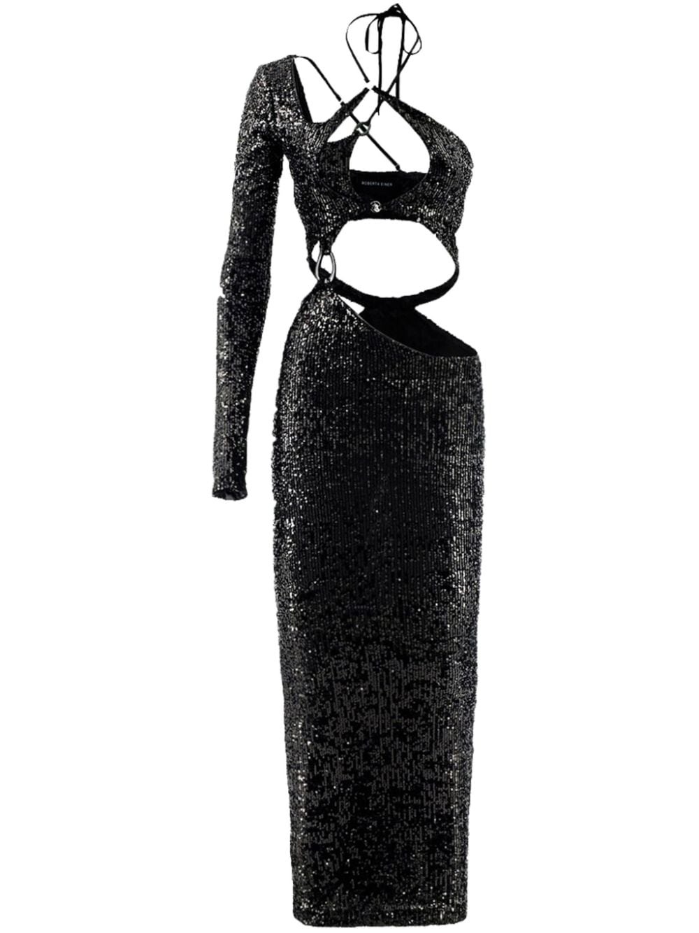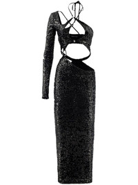 Banu sequin-embellished dress Highlights - Black - Sequin embellishment - Cut-out detailing - Halterneck tie fastening - Adjustable strap to the rear - Single long sleeve - Long length Imported Composition Polyester 100%