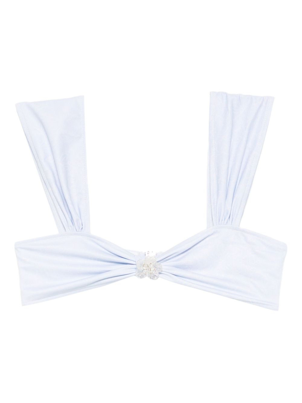 x Kiss ‘n Thrill Nikita floral-applique bikini top Highlights - Light blue - Rear clasp fastening - Wide shoulder straps - Be mindful to try on swimwear over your own garments. Imported Composition Outer: Recycled Polyester 82%, Elastane 18% Lining: Polyester 93%, Spandex/Elastane 7% Washing instructions Hand Wash