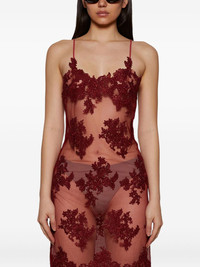 lace-detailing dress Highlights - Dark red - Sheer - Scoop neck - Sleeveless - Above-knee length Imported Composition Cotton 40%, Polyester 30%, Polyamide 20%, Viscose 10% Washing instructions Read Manufacturer Guidelines