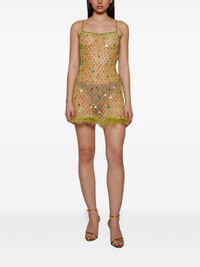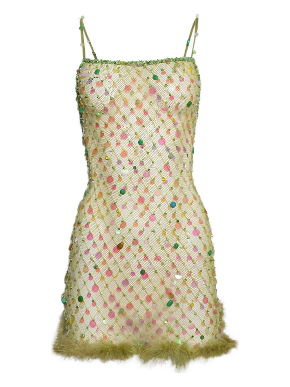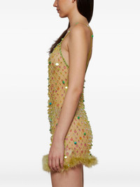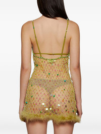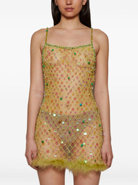 sequin-embellished mini dress Highlights - Light green - Sheer - Square neck - Sleeveless Imported Composition Crystal 100%, Polyamide 100%, Porcelain 100%, Feather 100% Washing instructions Read Manufacturer Guidelines