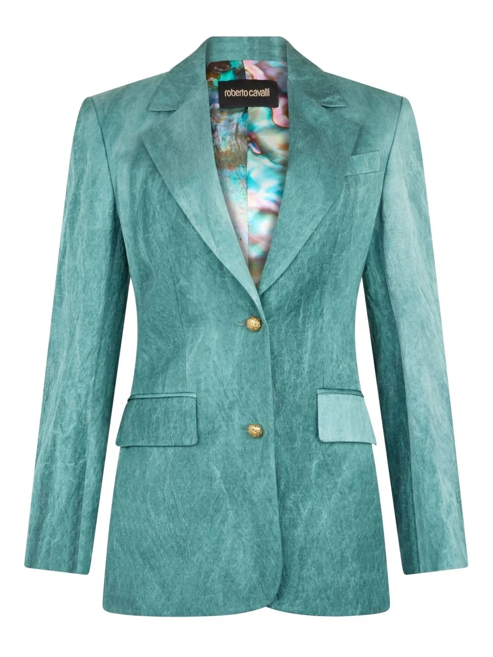 abstract-pattern blazer Highlights - Aqua blue - Front button fastening - Two side flap pockets - Buttoned cuffs - Long sleeves Imported Composition Fabric 100%