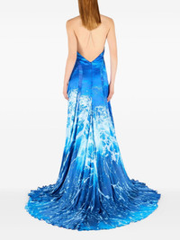 abstract-print dress Highlights - Aqua blue - Rear zip fastening - Halterneck - Open back - Floor-length Imported Composition Fabric 100%