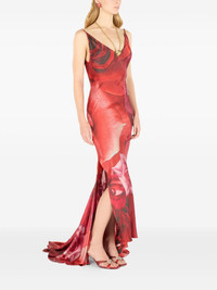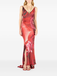 abstract-print midi dress Highlights - Ruby red - V-neck - Open back - Front slit - Sleeveless Imported Composition Silk 100%