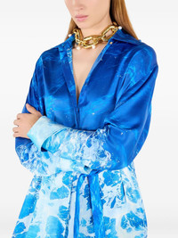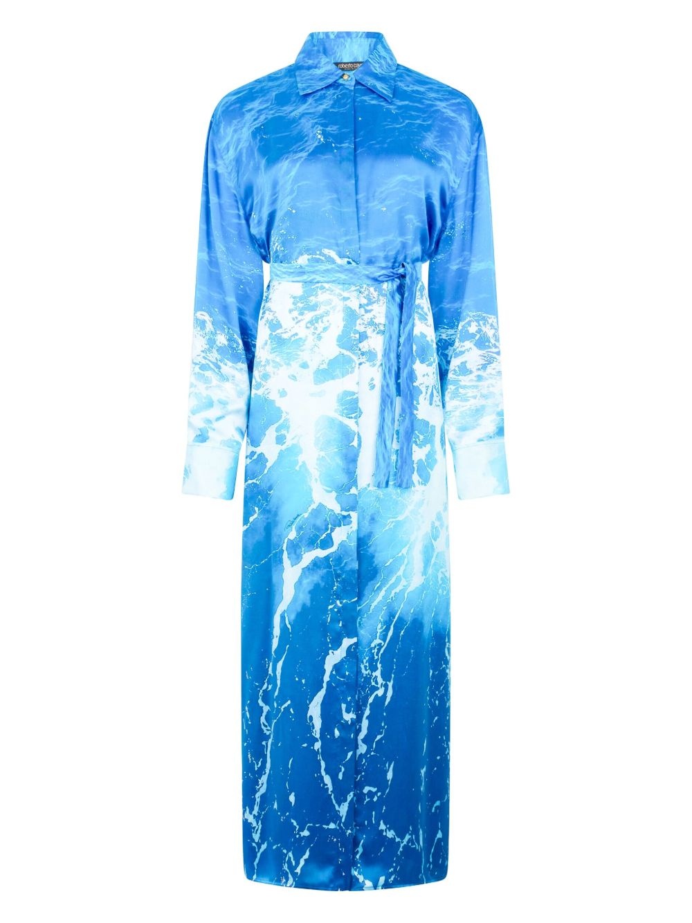 abstract-print midi dress Highlights - Aqua blue - Concealed front fastening - Belted waist - Straight-point collar - Long sleeves Imported Composition Fabric 100%