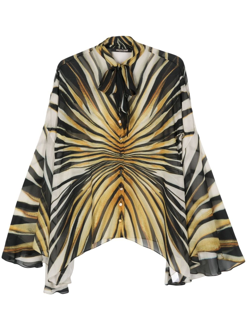 abstract-print shirt Highlights - Black/sunflower yellow/off-white - Silk - Semi-sheer construction - Abstract pattern print - Pussy-bow collar - Long wide sleeves - Handkerchief hem - Unlined - Fabric-covered buttons - Front button placket Made in Italy Composition Silk 100% SIZE & FIT Model measurements Height 5 ft 10 in(1.77 m) Bust/Chest 32.28 in(82 cm) Hips 35.03 in(89 cm) Waist 25.19 in(64 cm) FittingInformation Designed to be unstructured, offering a loose fit throughout Constructed with additional length on the sleeve Made from a lightweight non-stretch fabric This piece fits true to size – take your usual size