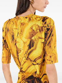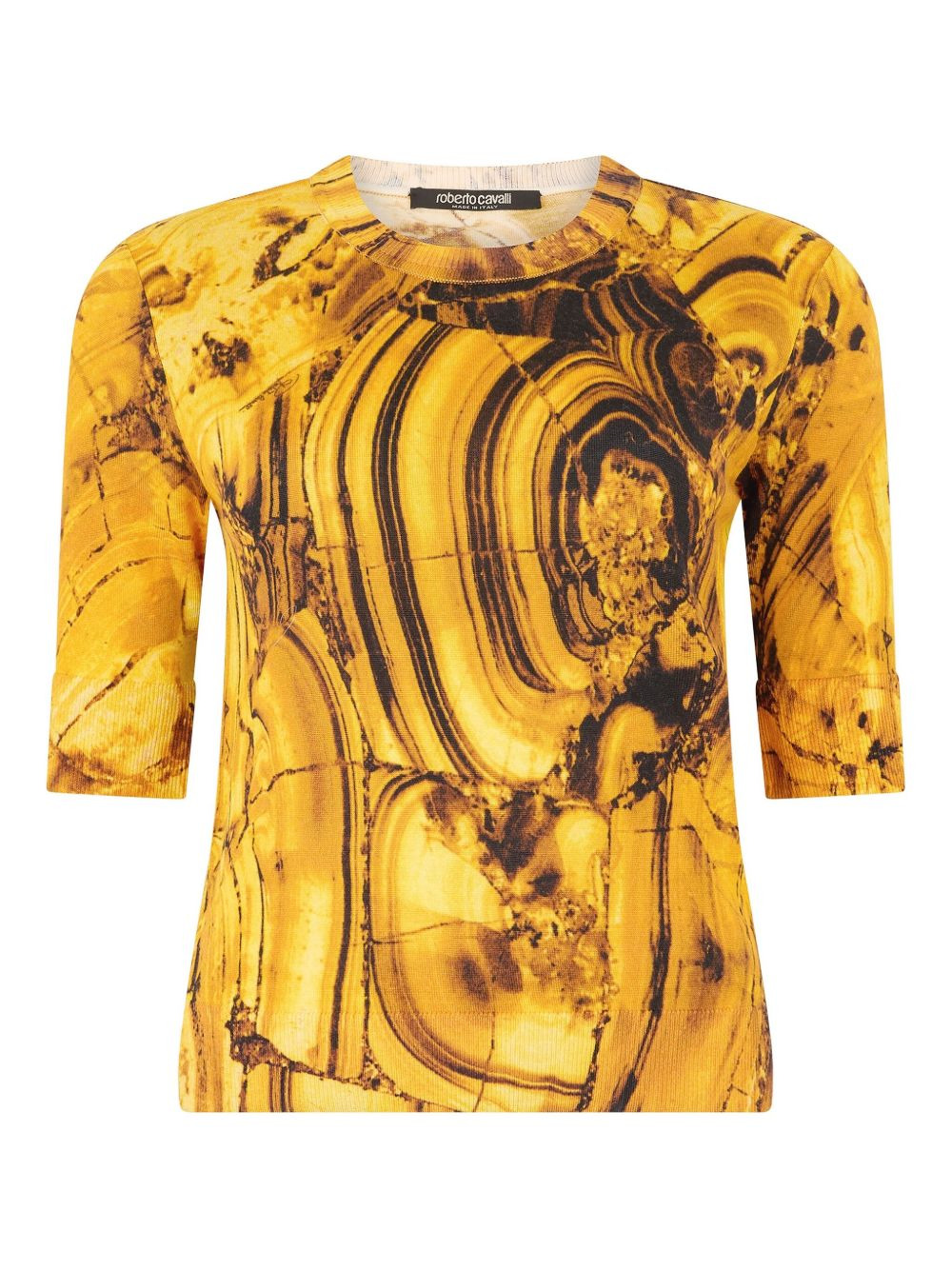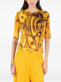 ambra-print ribbed t-shirt Highlights - Yellow - Ambra-print - Ribbed texture - Round neck - Three-quarter sleeves Made in Italy Composition Silk 100%, Wool 100% Washing instructions Read Manufacturer Guidelines