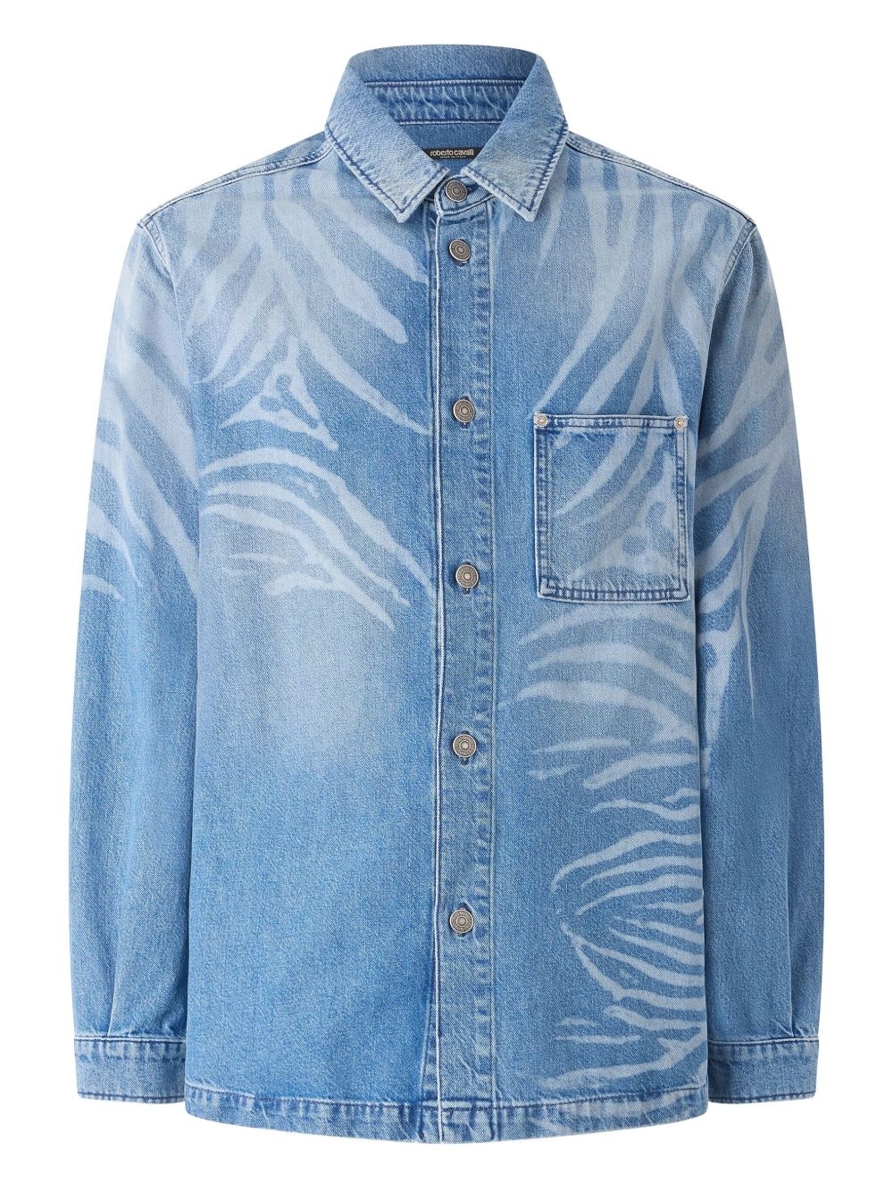 animal-print denim shirt Highlights - Light blue - Front button fastening - Chest patch pocket - Buttoned cuffs - Long sleeves Made in Italy Composition Fabric 100%