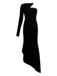 asymmetric velvet dress Highlights - Black - Jaguar print - One-shoulder neckline - Long sleeve - Asymmetrical hem - Velvet Imported Composition Fabric 100% Washing instructions Read Manufacturer Guidelines
