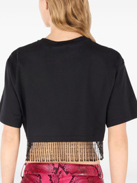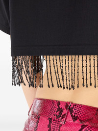 beaded-fringe crop top Highlights - Black - Round neckline - Short sleeves - Beaded fringe detailing - Cropped silhouette - Tonal logo lettering - Relaxed fit - Straight hem Made in Italy Composition Cotton 100%, glass 75%, Polyvinyl Acetate (PVA) 20%, Rayon 5%