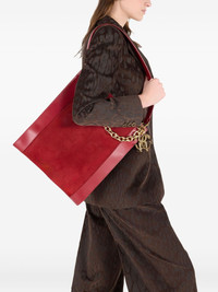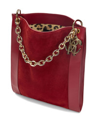 chain-embellished suede shoulder bag Highlights - Red - Suede texture - Leather panels - Gold-tone chain detail - Snake-and-logo charm - Single top handle Imported Composition Outer: Suede 100%