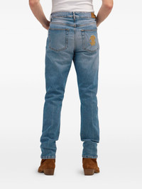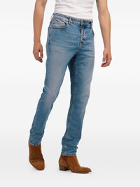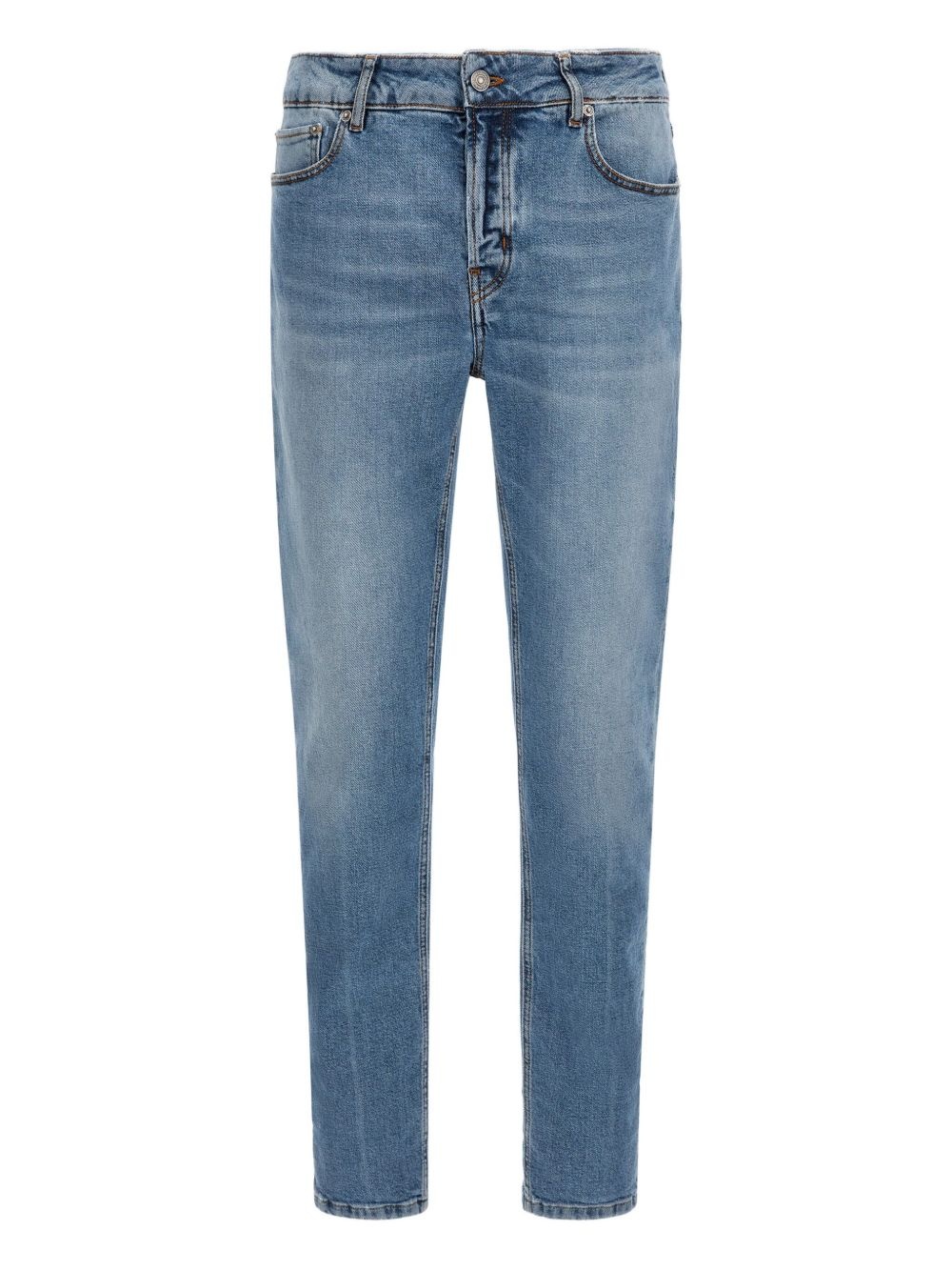 cotton jeans Highlights - Powder blue - Front button fastening - Classic five pockets - Logo patch to the rear - Belt loops Made in Italy Composition Outer: Cotton 99%, Elastane 1% Lining: Cotton 100% Washing instructions Machine Wash