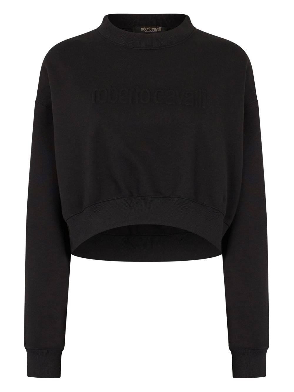 cropped sweatshirt Highlights - Black - Ribbed cuffs and hem - Crew neck - Long sleeves Imported Composition Cotton 100%, Polyurethane 75%, Polyester 25%