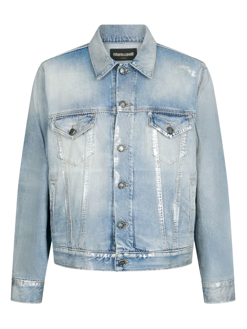 distressed denim jacket Highlights - Blue - Front button fastening - Classic collar - Chest flap pockets - Buttoned cuffs Imported Composition Cotton 100%