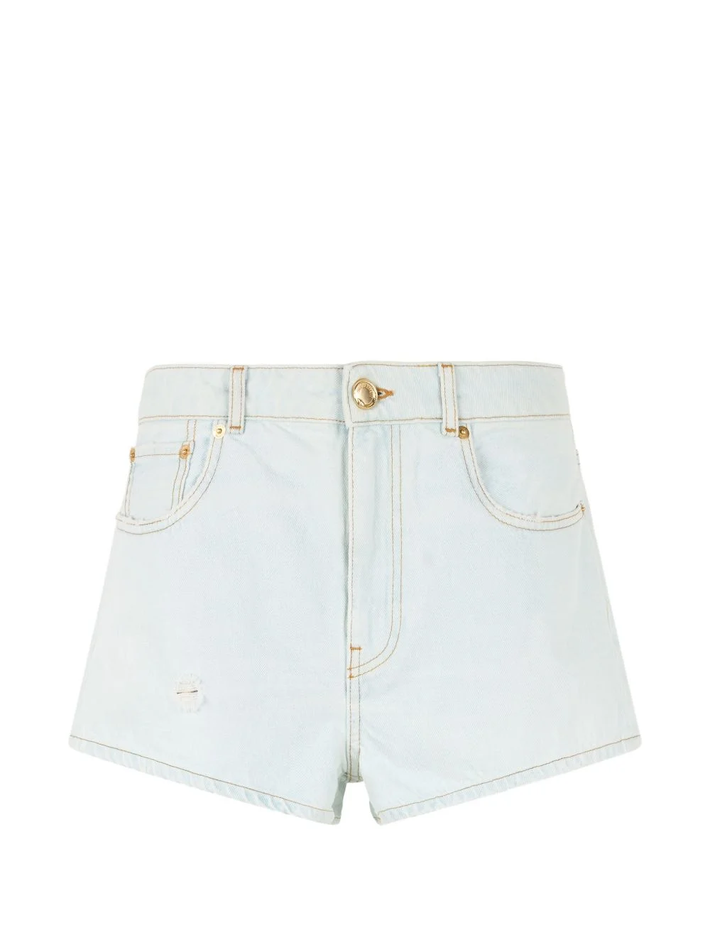 distressed-details denim shorts Highlights - Light blue - Button fly fastening - Classic five pockets - Belt loops Imported Composition Fabric 100% Washing instructions Read Manufacturer Guidelines