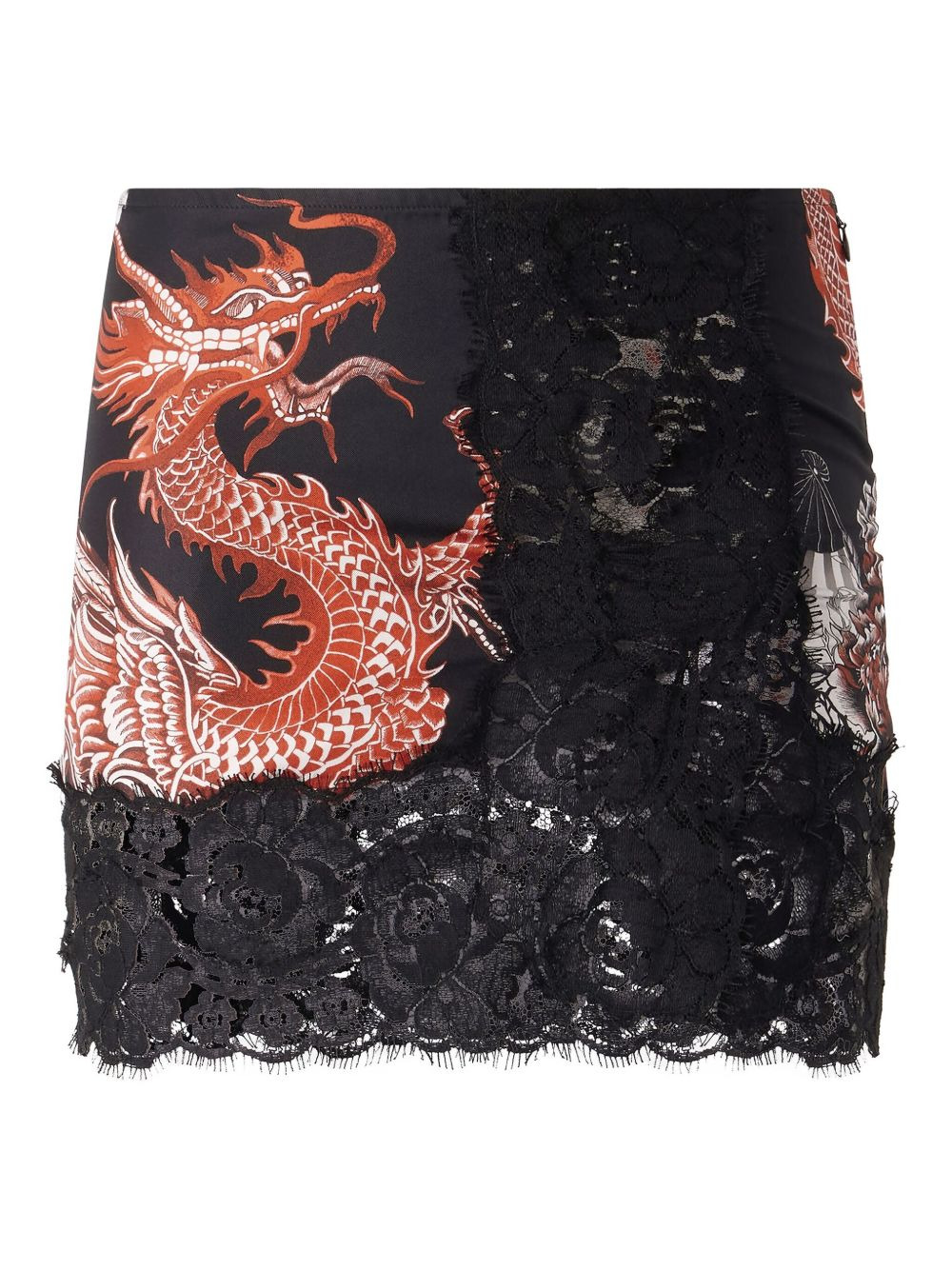 dragon-print lace skirt Highlights - Black - Floral lace trim - Side zip fastening Imported Composition Silk 100% Washing instructions Read Manufacturer Guidelines