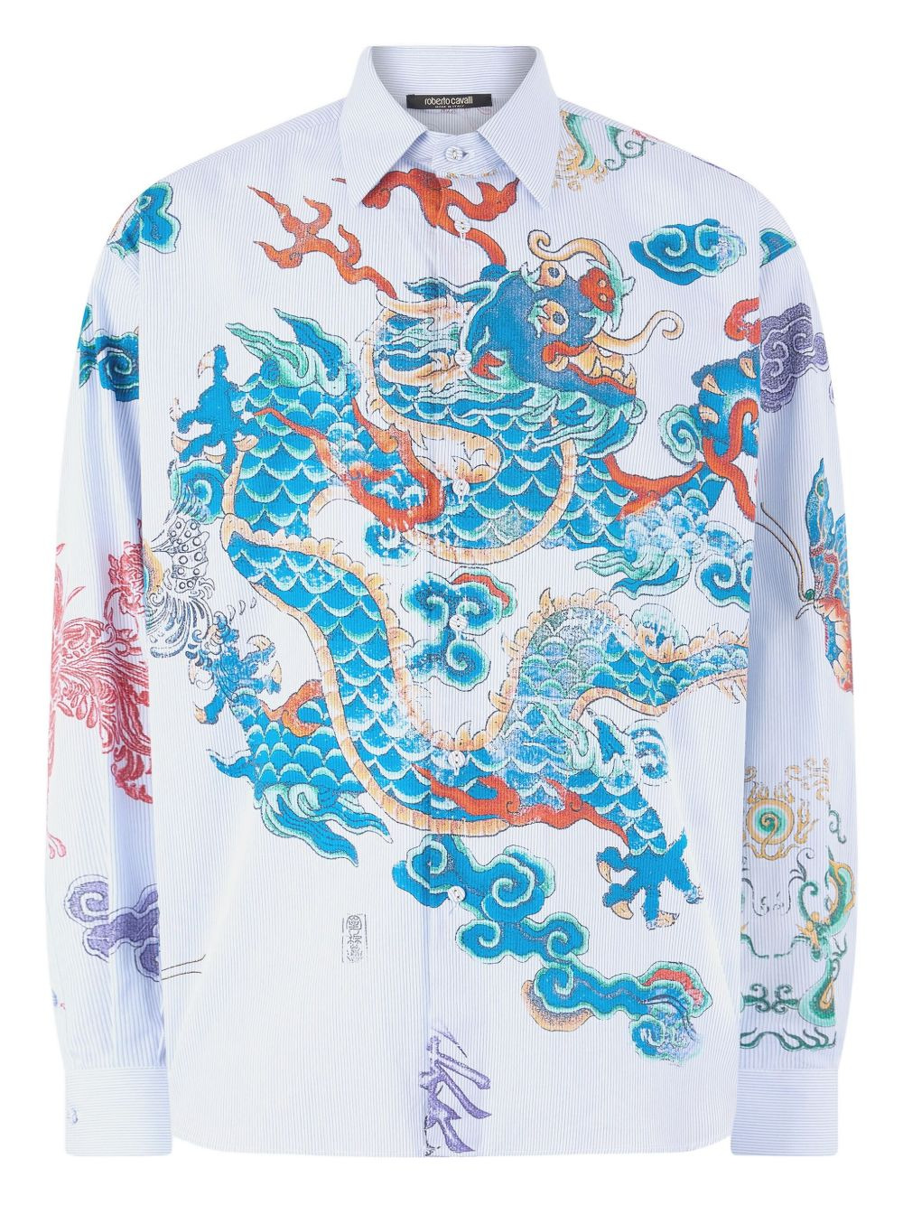 dragon-print shirt Highlights - Light blue - Dragon and butterfly print - Pinstripe pattern - Button fastening Made In Italy Composition Cotton 100% Washing instructions Read Manufacturer Guidelines