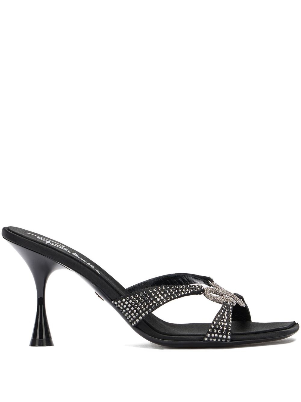 embellished heeled sandals Highlights - Rhinestone embellishment - High cone heel - Open-toe design - Cross-strap detail - Black Made in Italy Composition Lining: Calf Leather 100% Sole: Calf Leather 100% Outer: Calf Leather 100%