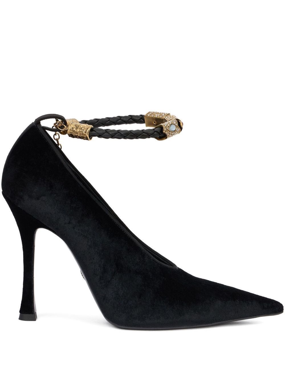 Roberto Cavalli Velvet Stiletto Heels With Jewel Anklet