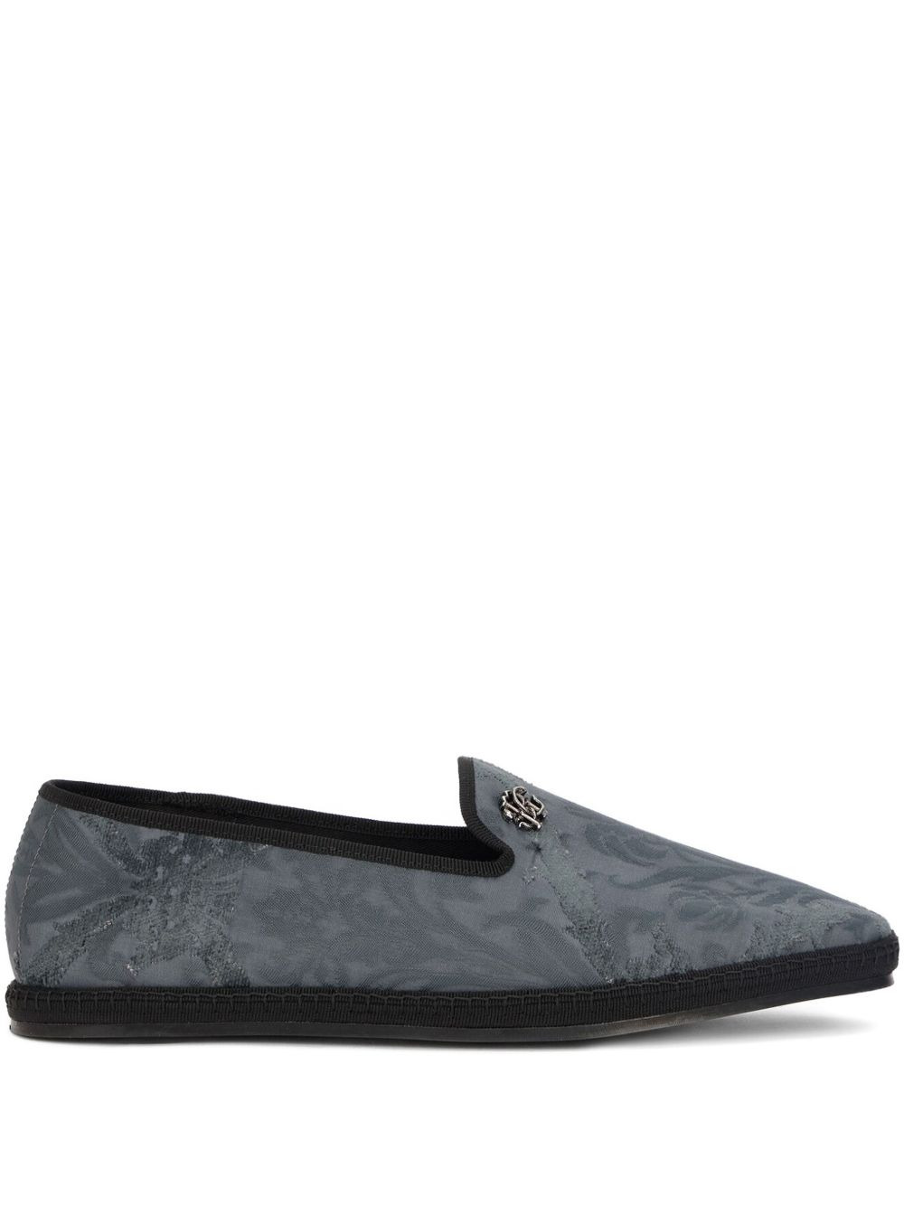 embossed-logo loafers Highlights - Grey - Embossed floral pattern - Logo emblem - Slip-on style - Flat sole Imported Composition Sole: Rubber 100% Outer: Fabric 100% Lining: Fabric 100%