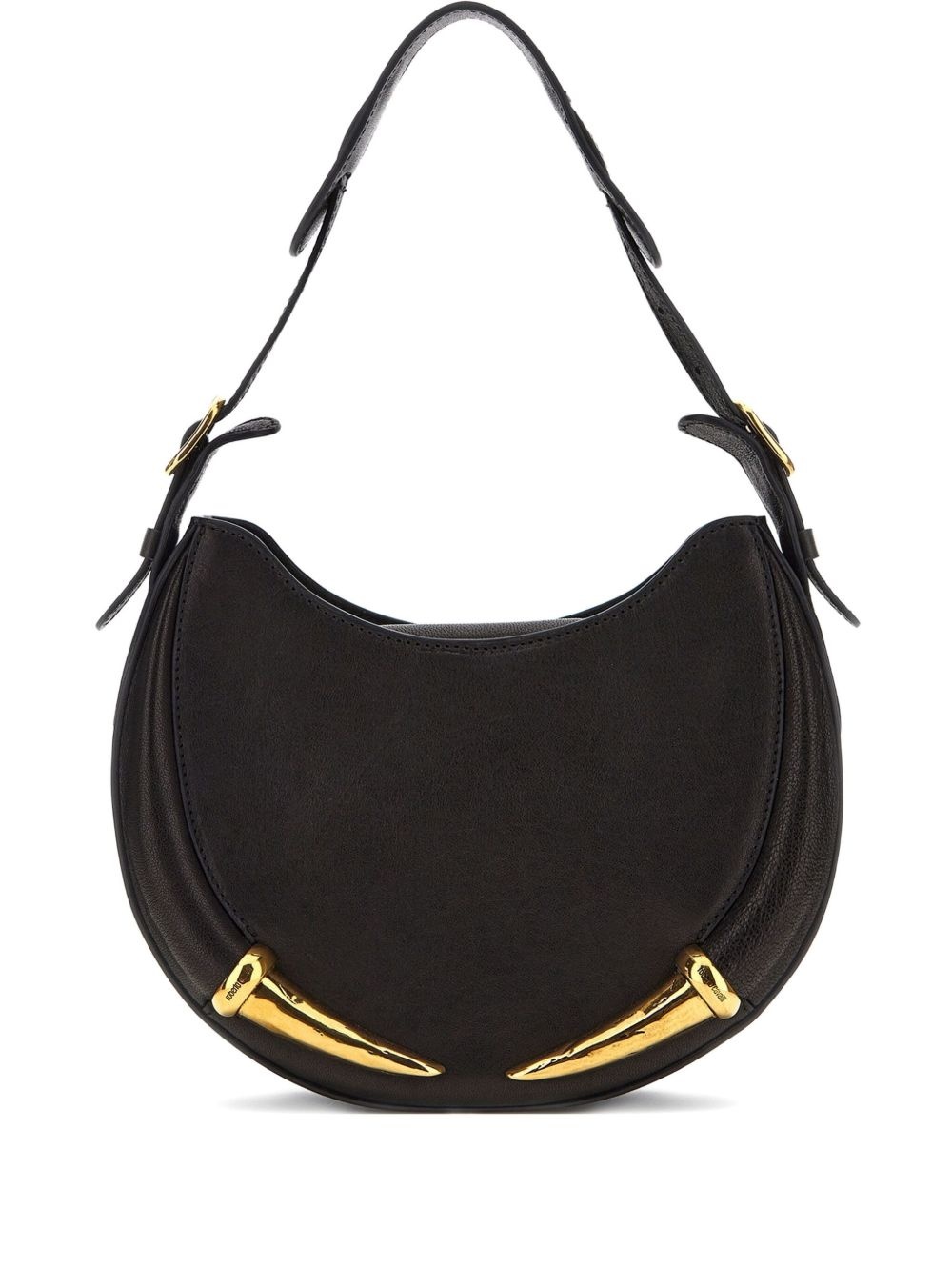 Fang Bag curved-silhouette shoulder bag Highlights - Black - Gold-tone hardware - Applique details - Top handle - Foldover top - Embossed logo - Main compartment Made in Italy Composition Lining: Cotton 97%, Spandex/Elastane 3% Outer: Bos Taurus 100% SIZE & FIT Measurement DEPTH 2.75 in(7 cm) HEIGHT 7.87 in(20 cm) WIDTH 9.44 in(24 cm)