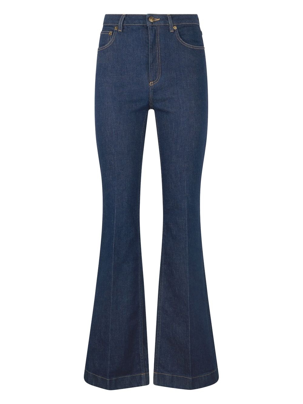 flared jeans Highlights - Deep blue - Classic five-pocket design - High waist - Flared leg - Contrast stitching - Button and zip fastening - Rear logo patch - Stitched hemline - Tailored silhouette Imported Composition Outer: Cotton 98%, Spandex/Elastane 2% Lining: Cotton 100%