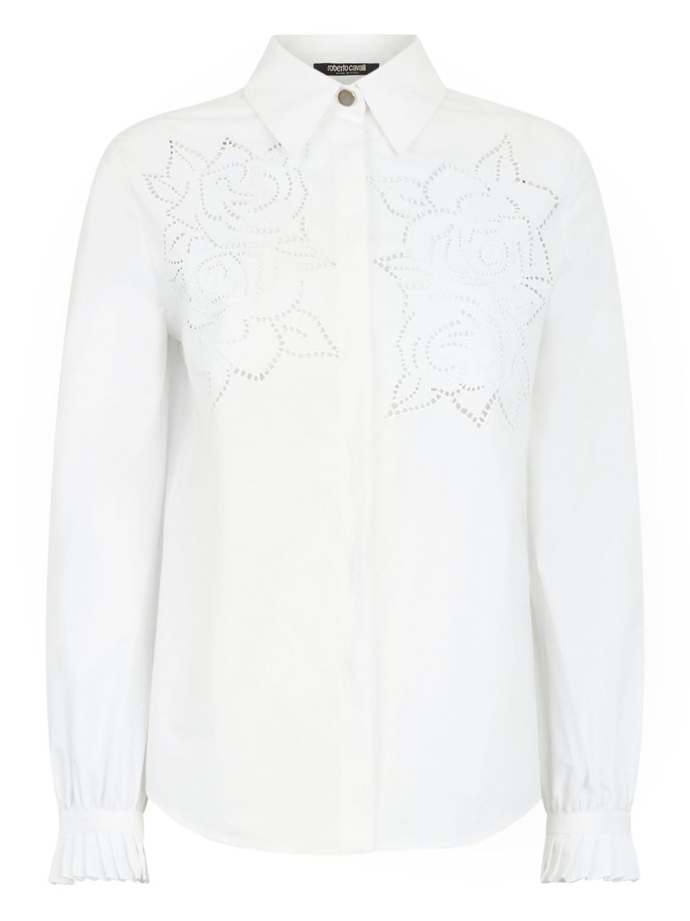 floral-embroidered shirt Highlights - White - Front embroidered floral detail - Classic collar - Button-up fastening - Long sleeves - Pleated cuff detailing - Relaxed silhouette Made in Italy Composition Cotton 100%