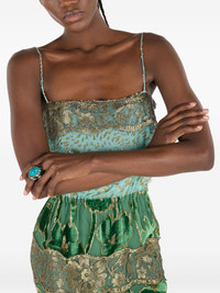 floral-lace midi dress Highlights - Green - Spaghetti straps - Embellished neckline - Tiered construction - Panelled design Imported Composition Silk 100% Washing instructions Read Manufacturer Guidelines