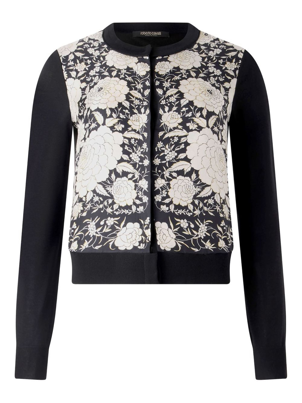 floral-panel cardigan Highlights - Black - Floral print panel - Long sleeves - Button front fastening - Ribbed hem - Round neck Made in Italy Composition Fabric 100%, Silk 100% Washing instructions Read Manufacturer Guidelines