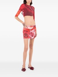 floral-print mini skirt Highlights - Red - Floral print - Distressed hem - Front button fastening - Two front pockets - Rear patch logo - Fitted silhouette - Raw-cut edges Imported Composition Lining: Polyester 65%, Cotton 35% Outer: Cotton 98%, Spandex/Elastane 2%