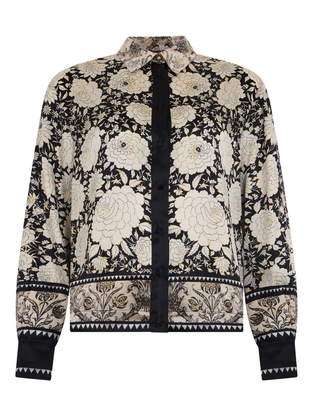 floral-print shirt Highlights - Beige and black - Floral print - Border print - Button fastening - Long sleeves - Buttoned cuffs Imported Composition Silk 100% Washing instructions Read Manufacturer Guidelines