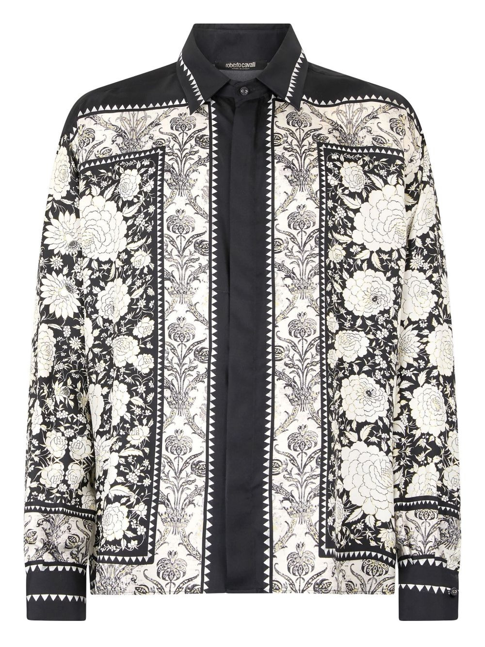 floral-print silk shirt Highlights - Black - Floral print - Panelled design - Long sleeves - Point collar - Front button fastening Made In Italy Composition Silk 100% Washing instructions Read Manufacturer Guidelines