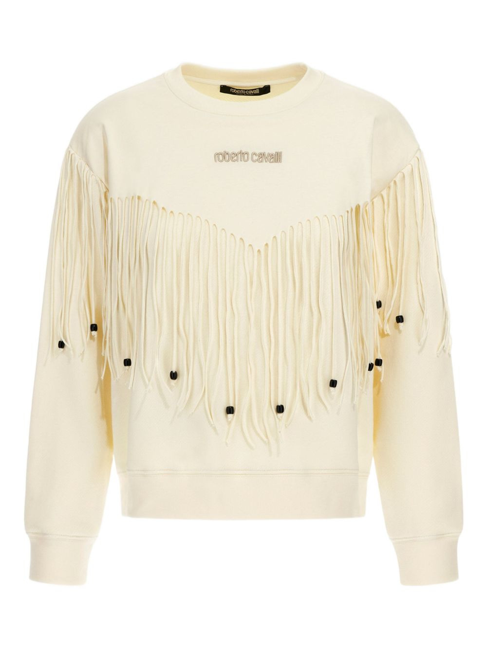 fringe sweatshirt Highlights - Cream - Fringe detail - Bead embellishment - Round neck - Long sleeves - Logo detail Made in Italy Composition Cotton 100% Washing instructions Machine Wash