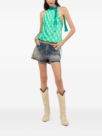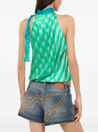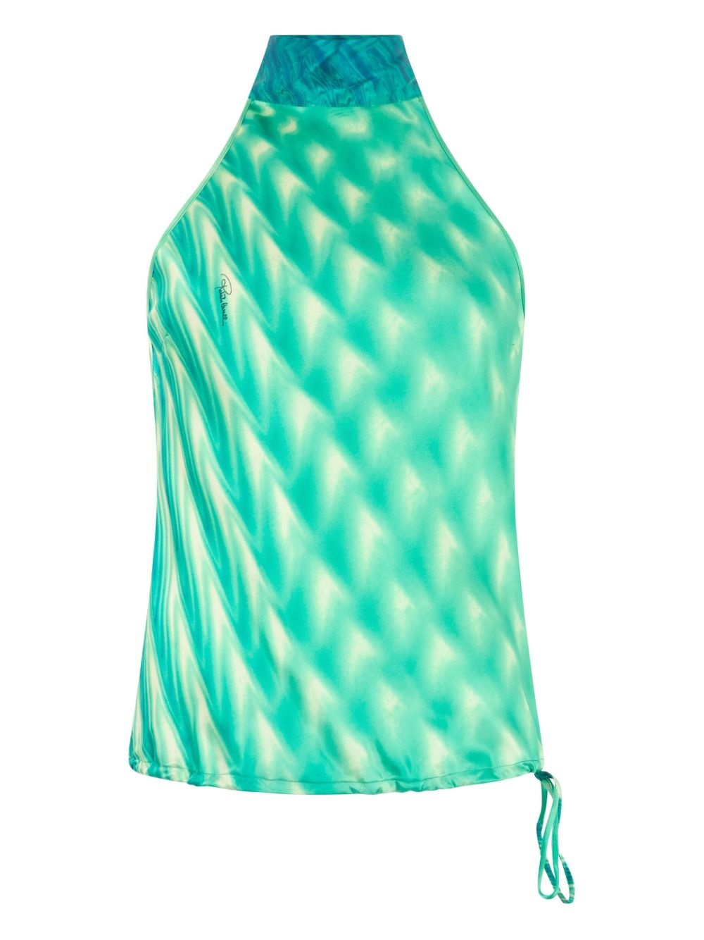 graphic-print silk top Highlights - Green - Halterneck tie fastening - Sleeveless - Drawstring hem Imported Composition Silk 100%