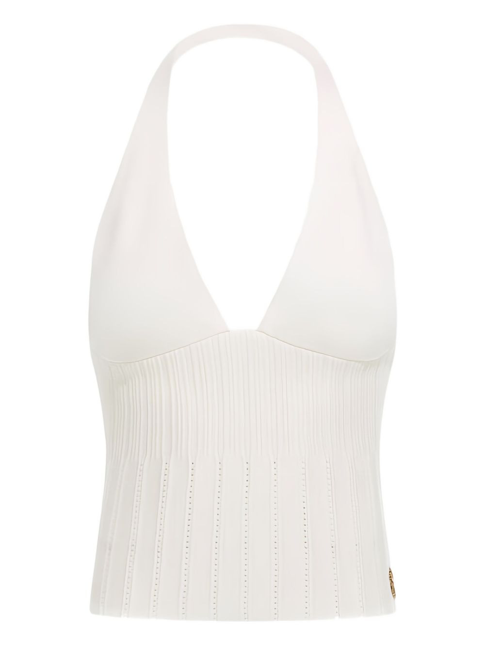 halterneck ribbed top Highlights - White - Ribbed texture - V-neckline Made in Italy Composition Viscose 83%, Polyester 17% Washing instructions Read Manufacturer Guidelines