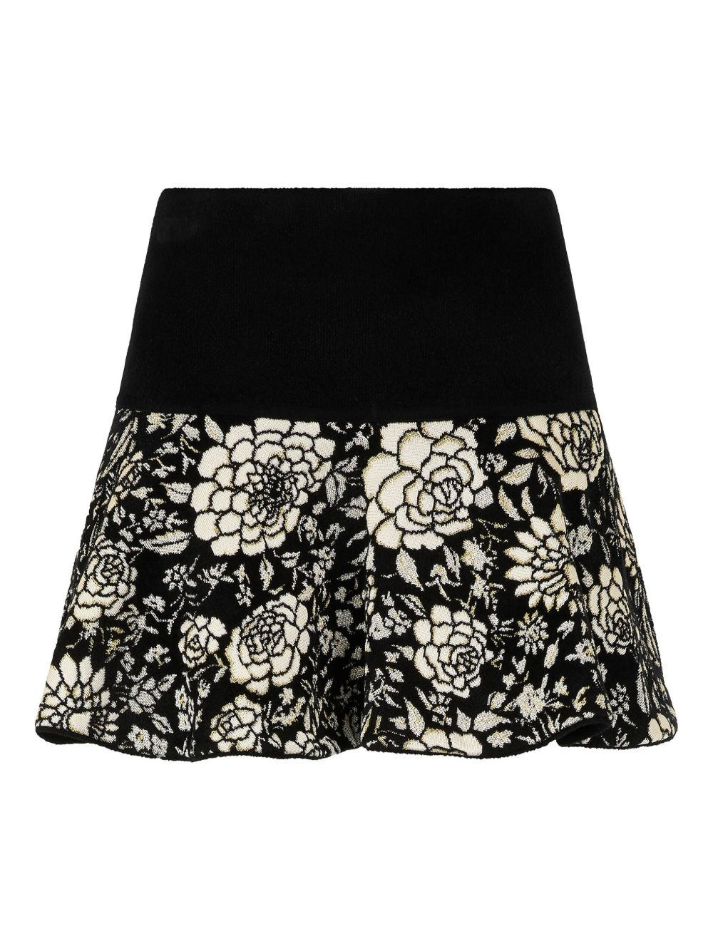 jacquard floral mini skirt Highlights - Black - Jacquard fabric - Floral motif - Flared hem - Fitted waistband - Mini length Imported Composition Fabric 100% Washing instructions Read Manufacturer Guidelines